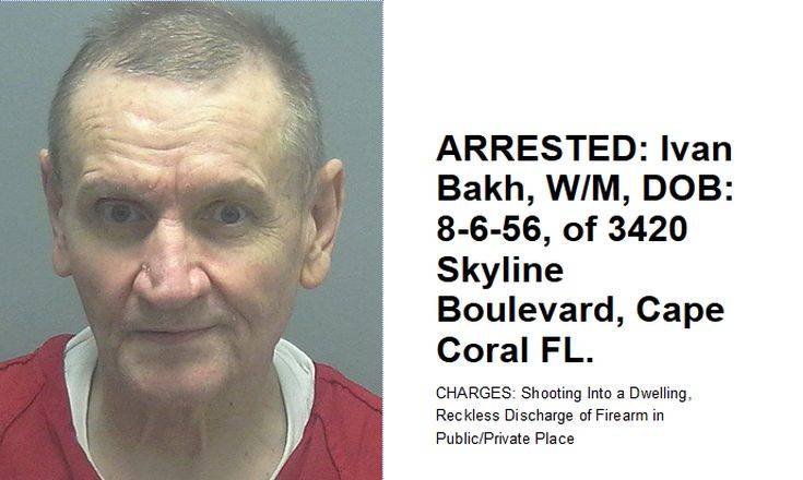 Όπως έγινε γνωστό από την αστυνομία, ο 61χρονος Ιβάν Μπακ συνελήφθη την περασμένη Κυριακή και σε βάρος του ασκήθηκαν κατηγορίες για χρήση όπλου δημόσια και πυροβολισμούς σε κατοικία.