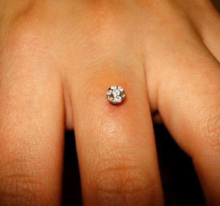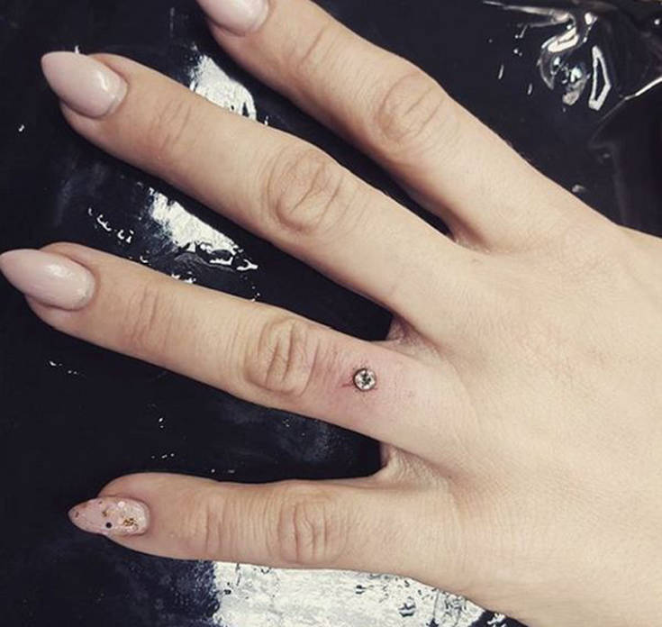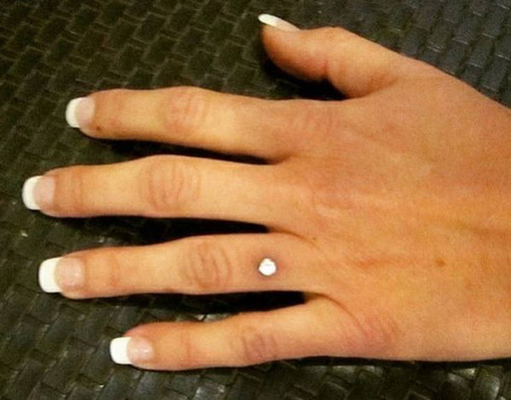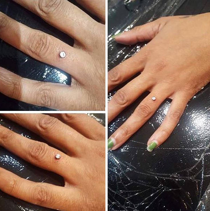 Κάποιες άλλες φαίνεται πως σκέφτηκαν έναν πιο ιδιαίτερο τρόπο να φορέσουν το κόσμημά τους κάνοντας piercing την πολύτιμη πέτρα πάνω στο δάχτυλό τους.