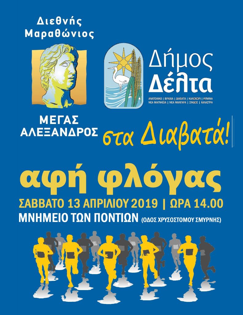 Για πέμπτη συνεχή χρονιά ο Δήμος Δέλτα συμμετέχει στον Διεθνή Μαραθώνιο «Μέγας Αλέξανδρος» με τη διοργάνωση υποδοχής και τελετής αφής της Αλεξάνδρειας Φλόγας το μεσημέρι του Σαββάτου 13/4 αλλά και την υποδοχή των αθλητών – δρομέων το πρωί της Κυριακής 14/4. Πρόκειται για την κορυφαία αθλητική – κοινωνική διοργάνωση της Θεσσαλονίκης, που φέτος διοργανώνεται για 14η χρονιά.